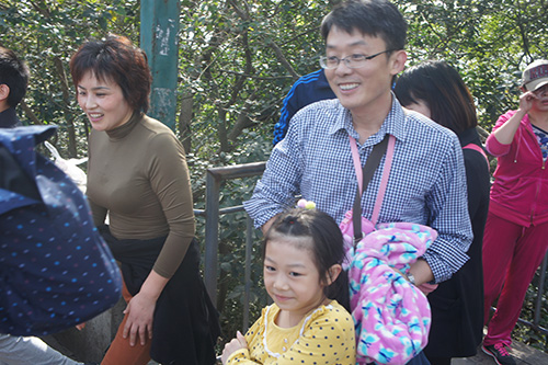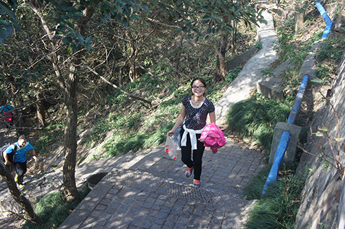 员工们此次前来参赛的状态各不相同,有的是纯玩性质,带着爱人或孩子享受一段难得温馨的休闲时光,同时也锻炼一下小朋友的体力,培养一份坚韧的品格。有的员工,则是挑战自己,因为从来没有登过紫金山顶,借此机会给自己一个目标、一份动力,带着一定要能登顶的信念一步步向前走,同时还不忘拍一拍沿途风景。当然还有一部分员工是非常有体育精神的,持着求胜心态,步履匆匆,不做停留。所以,当我们的工作人员在中途提供补给的时候,他们则连连摆手表示不需要,登上山顶才最重要。以至于,大部分人还在中马腰的时候,就已经有人登顶夺冠了。这是多大的差距啊!更夸张的是,坐缆车的工作人员还没有爬山的快!